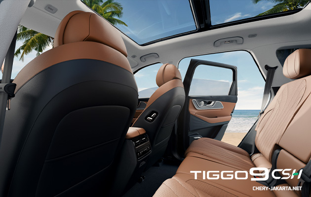 Masuk ke dalam kabin Tiggo 9 CSH, Anda akan disambut oleh interior yang dirancang untuk kenyamanan dan kemewahan maksimal. Kabinnya sangat lapang, memberikan ruang yang cukup untuk seluruh penumpang.